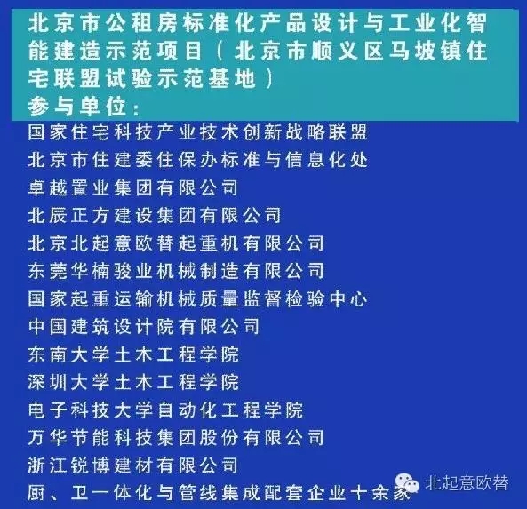 2013年,住宅科技產(chǎn)業(yè)技術(shù)創(chuàng)新戰(zhàn)略聯(lián)盟組織十多家產(chǎn)業(yè)鏈技術(shù)企業(yè)開展了聯(lián)盟重大課題“北京市公租房標準化產(chǎn)品設(shè)計與現(xiàn)澆鋼筋混凝土工業(yè)化建造研究與示范工程”。課題成果之一是工業(yè)化建造成套裝備,簡稱“空中造樓機”。采用“標準化設(shè)計、工廠化部品、機械化作業(yè)、裝配化施工、智能化控制和信息化管理”的方式,在建筑工地現(xiàn)場實現(xiàn)現(xiàn)澆鋼筋混凝土高層建筑工業(yè)化建造的大型、通用、組合式機械裝備及技術(shù)。