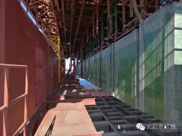 四是采用全自動液壓升降系統(tǒng)和插接式升降柱結(jié)構(gòu),總重量約2000噸的造樓機,可在一小時內(nèi)實現(xiàn)整層樓模板的開合模和整體升降的過程。