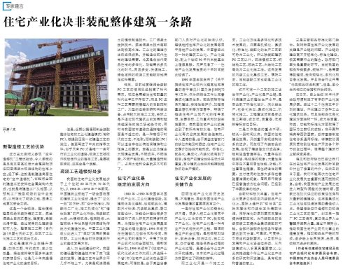 三、 住宅產業化是既定的發展方向 1980年~1990年我國學習國外的產業化、工業化建造經驗,在建筑體系化編制、住宅部品化、模數尺寸協調、內裝部品集成、廚衛定型設計、功能設計理論等多方面進行了深入研究并取得多樣成果,為推動住宅產業化發展奠定了堅實的理論基礎。1994年前后在住建部幾位部長和科技司、房地產業司的倡導下,開展了住宅產業現代化的全面規劃,編制發展計劃。1996年頒布了《住宅產業現代化試點工作大綱》,并選擇十個省(市)住宅產業試點在全國開展起來。可惜的是,由于某些當事部門人員對產業化的膚淺認識,錯誤地把住宅產業化的發展等同于房地產業的發展。中國曾經光彩一時的建筑工業化、產業化運動,到上個世紀90年代末就基本上偃旗息鼓、無聲無息了……住宅產業化發展寶貴的十年時間就此延誤了。