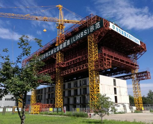 一、 新型造樓工藝的優勢 近日去北京順義參觀“空中造樓機”工程試驗場,令人感概的是足有五層高的龐大金屬架構頂在四層混凝土現澆結構的住宅上空。經了解,這就是能建造高層住宅的“空中造樓機”,它能將全部的建造工藝安排在金屬架構內完成,也就是將建造工廠從地面、從預制工廠搬到現場的空中去完成,從而簡化了現場工地,顯得工地更加安全文明。